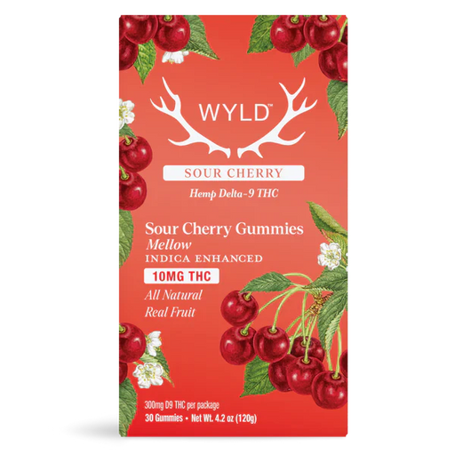 Wyld's Sour Cherry gummies deliver a burst of tart cherry flavor followed by a wave of mellow relaxation. Each gummy contains 10mg THC in an Indica...